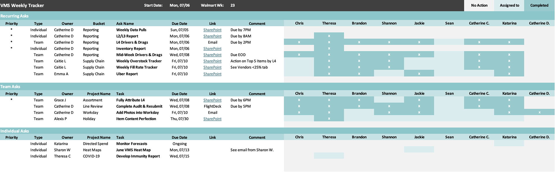 A selection of dashboards & team planners that I built